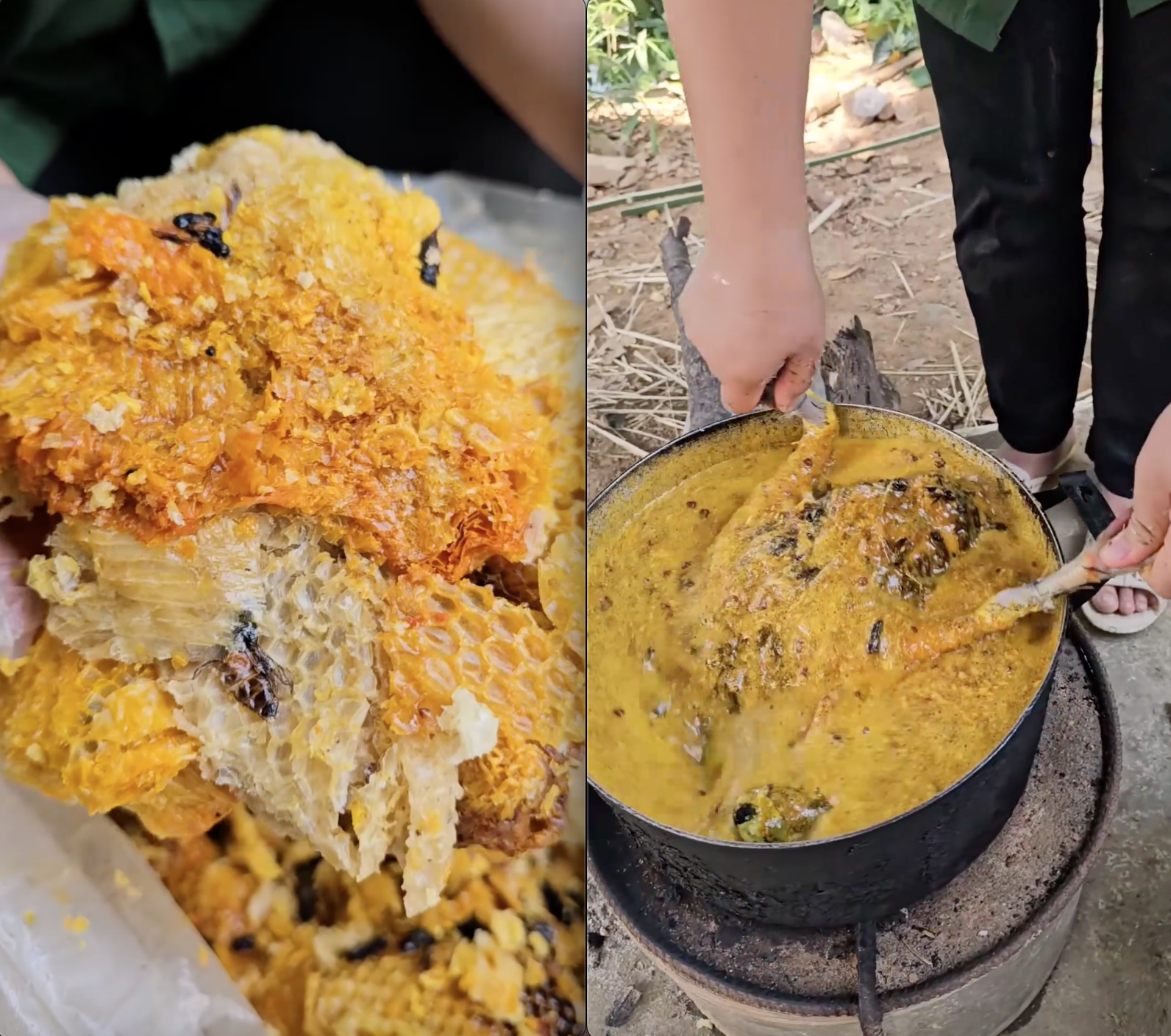 Cụ thể, cô nàng có tài khoản tên là Mai Tây Bắc đã chia sẻ cách làm lông vịt với sáp ong. Con vịt mà cô làm có rất nhiều lông tơ, lông ống khó nhổ, nếu ngồi nhặt tỉ mẩn cũng sẽ tốn rất nhiều thời gian. Vì thế, cô đã lấy sáp ong đun chảy rồi nhúng con vịt vào. Sau đó, Mai cho vào nước để làm nguội, cho lớp sáng đông cứng lại.