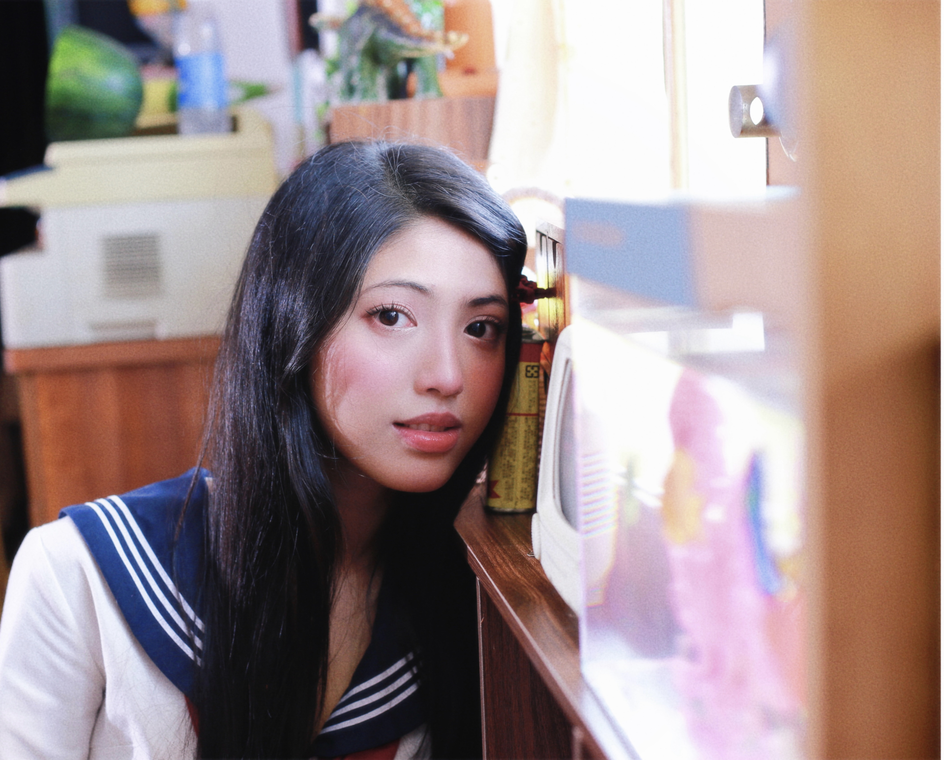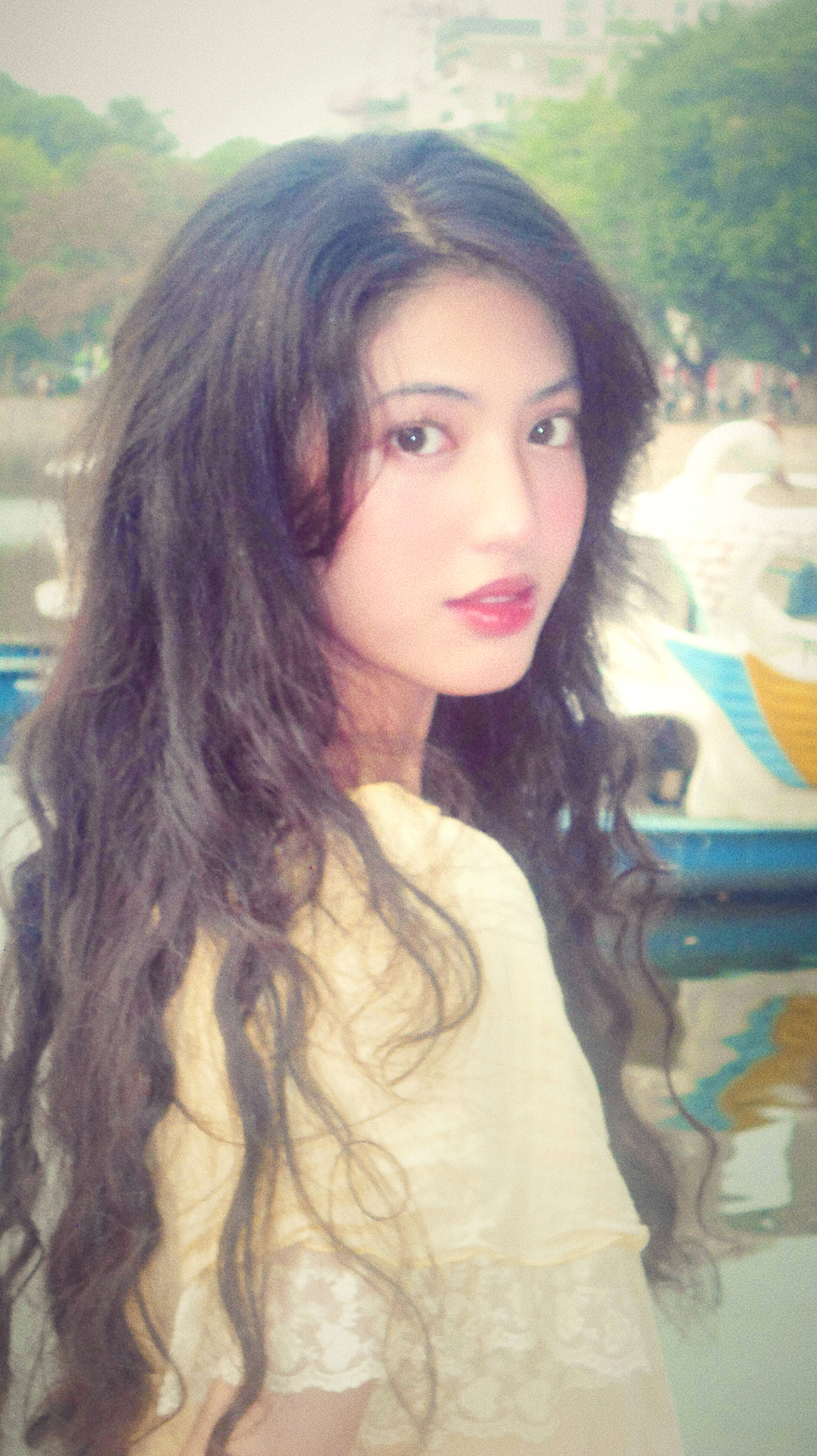 Trong bộ ảnh này, nhân vật chính là một cô gái với mái tóc dài, hơi xoăn nhẹ, buông xoã tự nhiên. Gương mặt trang điểm nhẹ với điểm nhấn ở đôi môi đỏ và má ửng hồng, tạo cảm giác trong trẻo nhưng vẫn nổi bật. Ánh mắt nhìn thẳng về phía ống kính, tạo cảm giác vừa tự nhiên vừa có chút cuốn hút.