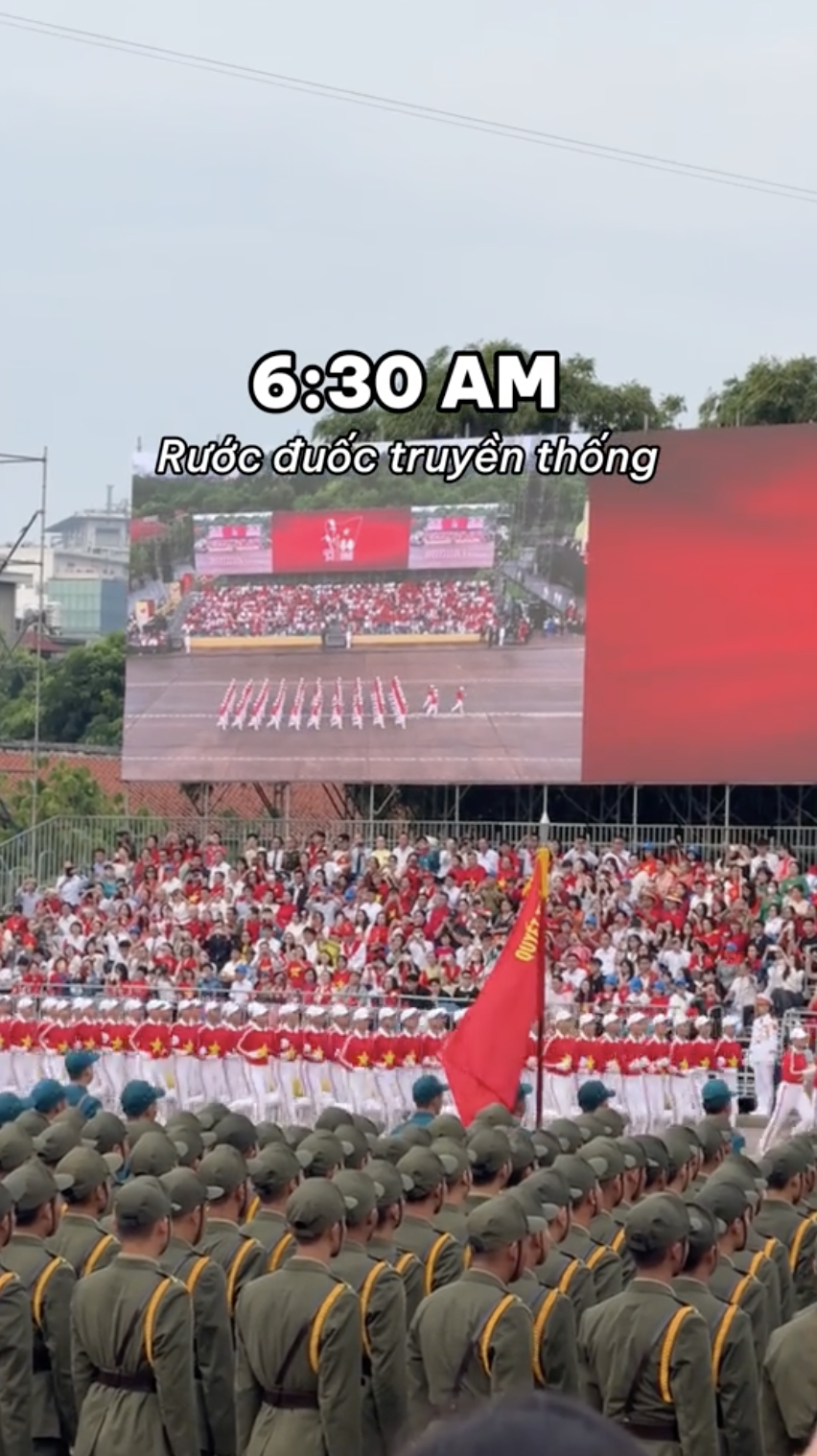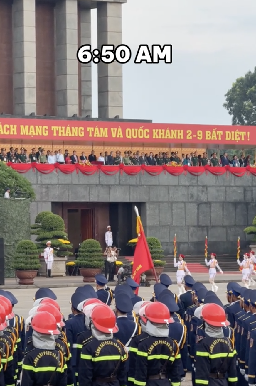 Cô bạn cũng khẳng định chiếc view tại Lăng chủ tịch Hồ Chí Minh thật sự mãn nhãn khi có thể chiêm ngưỡng từng khối diễu binh, diễu hành đi qua. Thậm chí, Vừng tập trung, chăm chú theo dõi đến mức cảm thấy 2 tiếng trôi qua rất nhanh và mong muốn được xem thêm nhiều lần nữa.