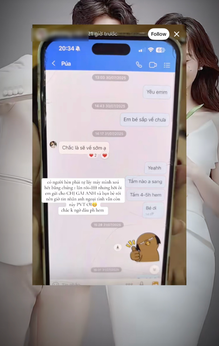 Đoạn tin nhắn được vợ của TikToker Thắng Không Kịp đăng tải, cho rằng anh ngoại tình với một cô gái được đặt tên Púa