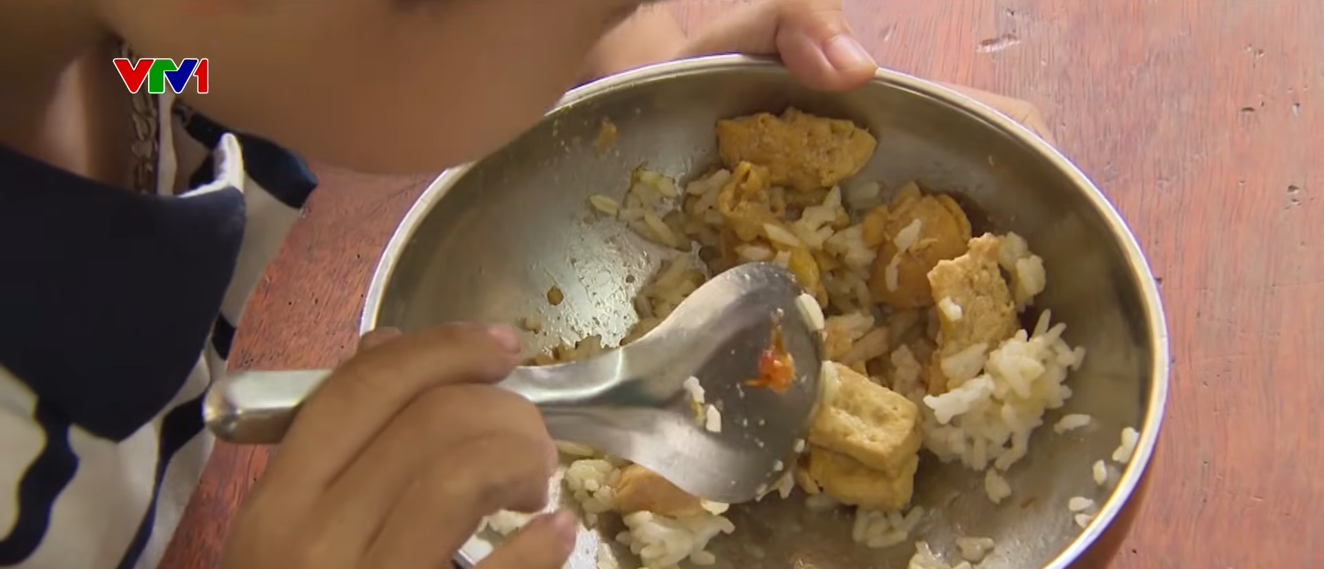 Hình ảnh thực tế trong phóng sự cho thấy suất ăn của các em trong lớp