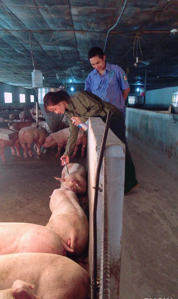 Bức ảnh nhận được lượt like "khủng" từ dân mạng được Nhàn chụp trong chuyến thực tập cuối khóa vừa diễn ra vào cuối tuần qua. Khung cảnh xung quanh là trong một trang trại lợn ở Ba Vì. Cô bạn đảm nhận công việc tiêm thuốc cho lợn, chứ không phải chăn lợn như một số bình luận.