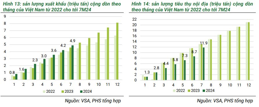 Ngoài ra, động lực tăng điểm của nhóm thép còn đến từ kỳ vọng sản lượng tiêu thụ nội địa phục hồi nửa cuối năm 2024.