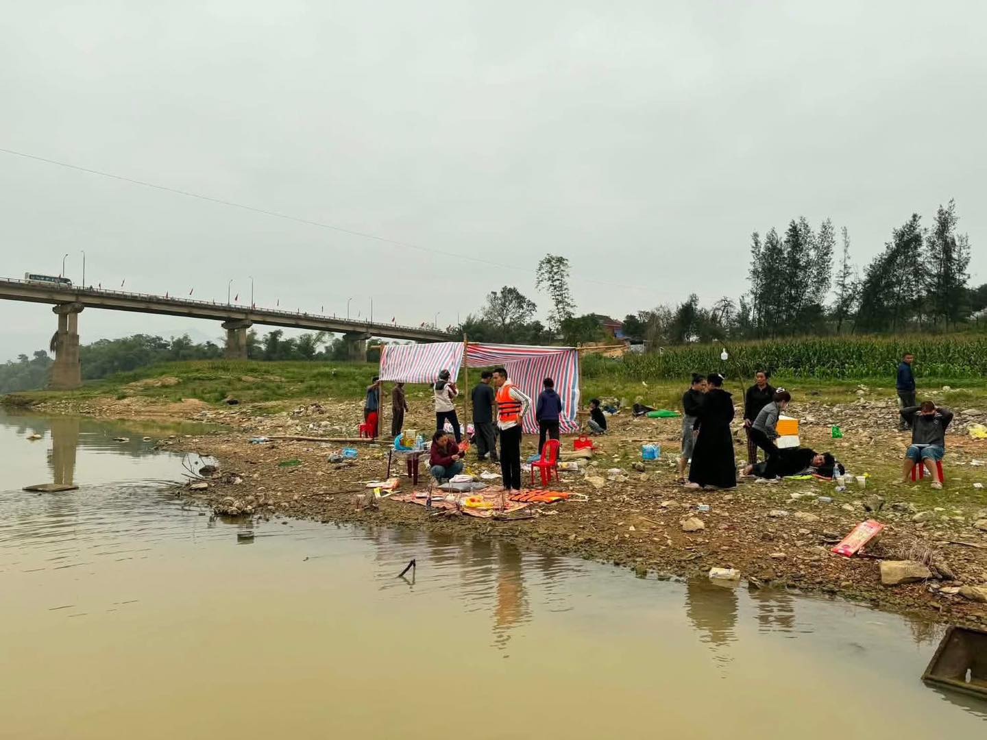 Hiện trường người dân đang tìm kiếm cô gái trẻ - Ảnh: Chuyện Nghệ An