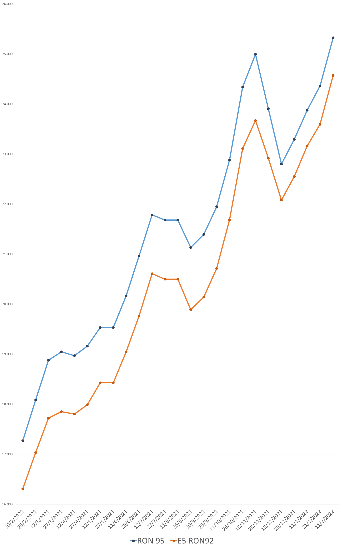 Biến động giá xăng từ ngày 10/2/2021-11/2/2022