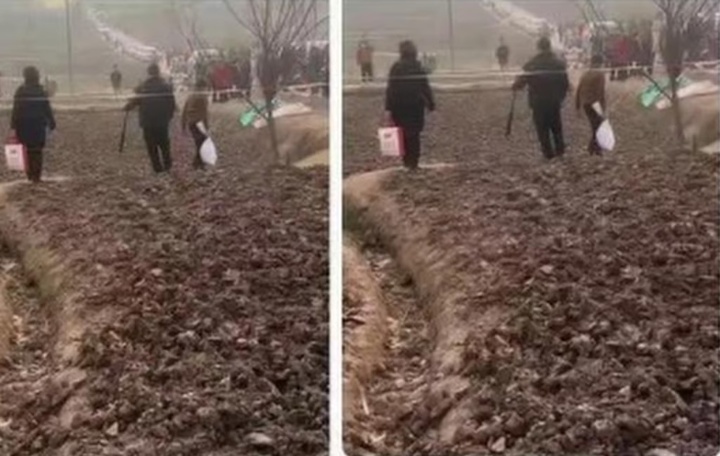 Đám đông người dân đã đến lấy đất từ khu đất bên ngoài nhà của Daidai. (Ảnh: Myzaker)
