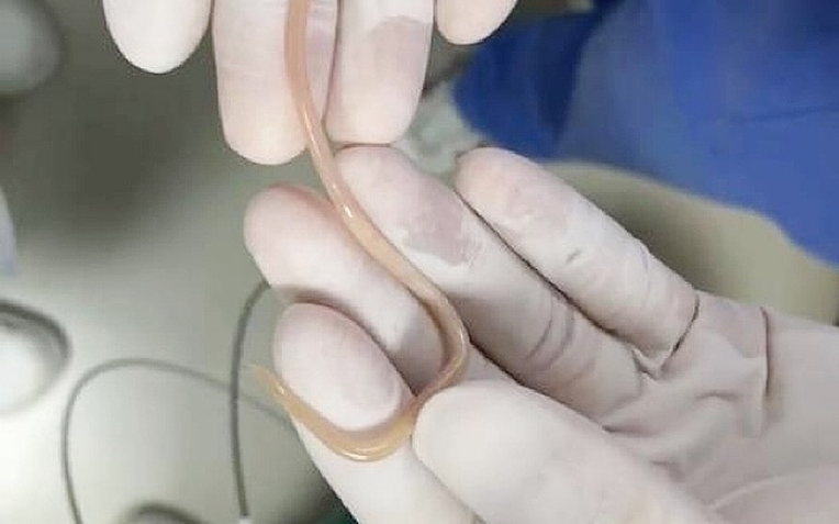 Con giun đũa sống dài 20cm được lấy ra khỏi cơ thể người phụ nữ