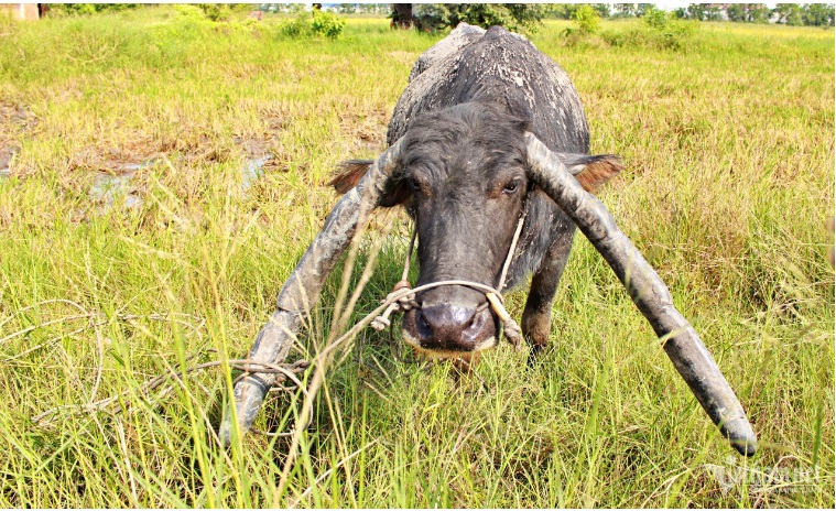 Con trâu có cặp sừng đặc biệt từng khiến dư luận xôn xao. (Ảnh: VietNamNet)