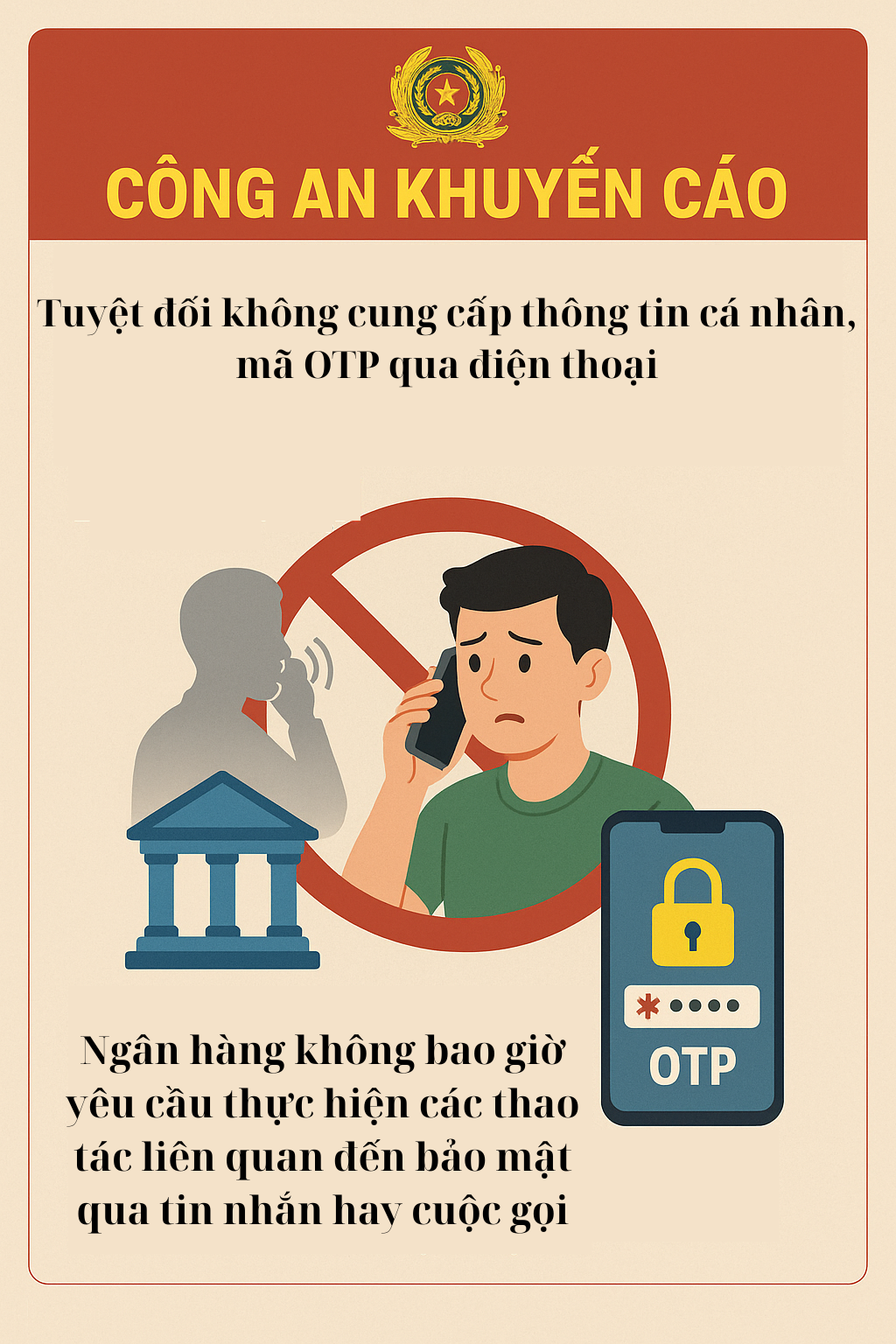 Phòng An ninh mạng Công an TP Đà Nẵng khuyến cáo: Người dân tuyệt đối không cung cấp thông tin cá nhân, mã OTP qua điện thoại. Ngân hàng không bao giờ yêu cầu khách hàng thực hiện các thao tác liên quan đến bảo mật qua tin nhắn hay cuộc gọi.