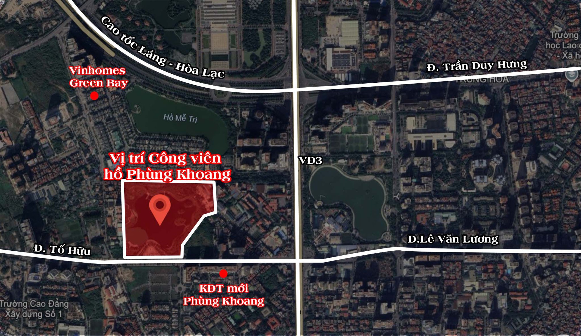 Dự án công viên hồ Phùng Khoang nằm trên địa bàn quận Thanh Xuân và quận Nam Từ Liêm (Hà Nội). Công viên có diện tích gần 12 ha. Trong đó, diện tích mặt hồ là hơn 7 ha; diện tích cây xanh cảnh quan gần 5 ha; chiều dài bờ kè là hơn một km.