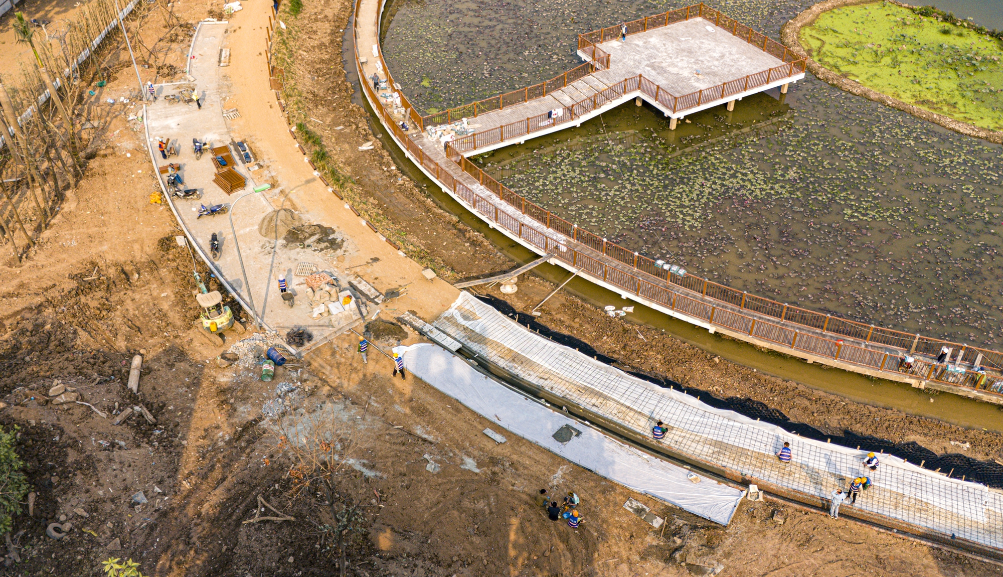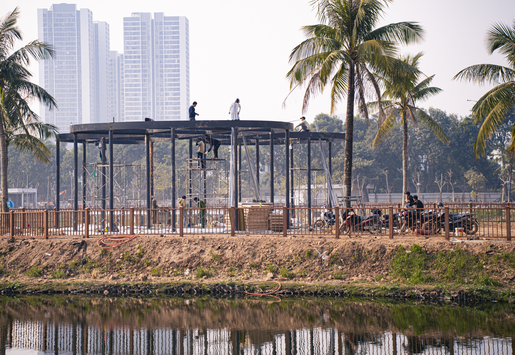Hàng trăm công nhân được huy động thi công để kịp đưa công viên hồ Phùng Khoang vào sử dụng dịp Tết Nguyên Đán 2025.