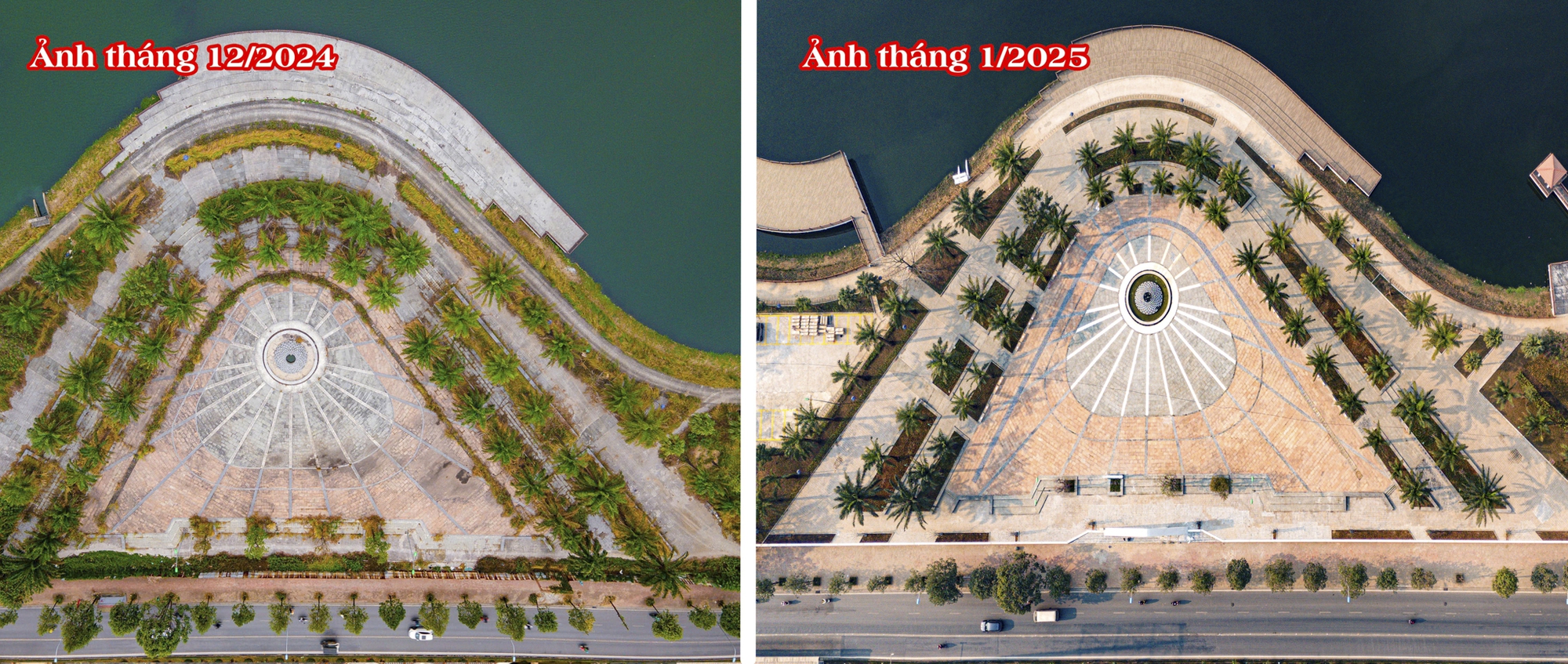 Từ nơi cỏ dại mọc um tùm, đến nay các hạng mục tại công viên hồ Phùng Khoang đang được tu sửa lại. Nơi đây đang mang một diện mạo hoàn toàn mới. Ảnh chụp vào tháng 12 và hiện tại.