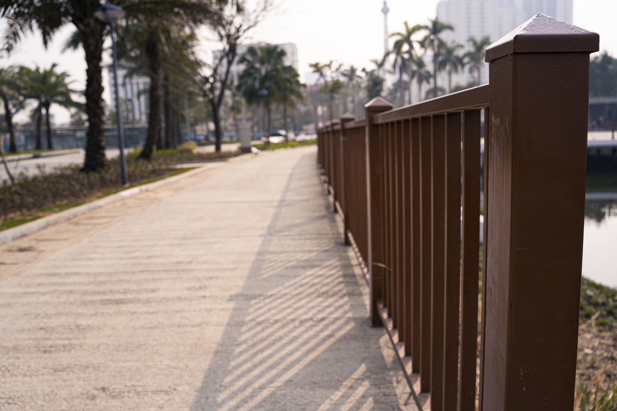 Các lối đi quanh công viên đã và đang được lát đá, lắp đặt lan can bảo vệ.