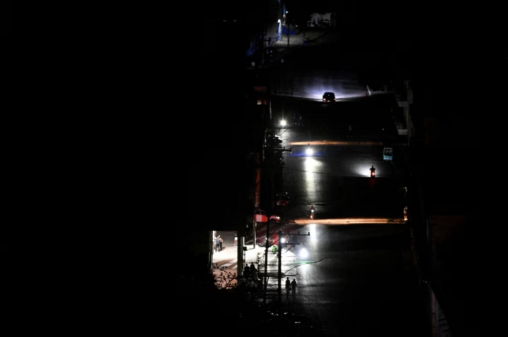 Xe cộ lưu thông trên đường phố trong thời gian mất điện. (Nguồn: Reuters)