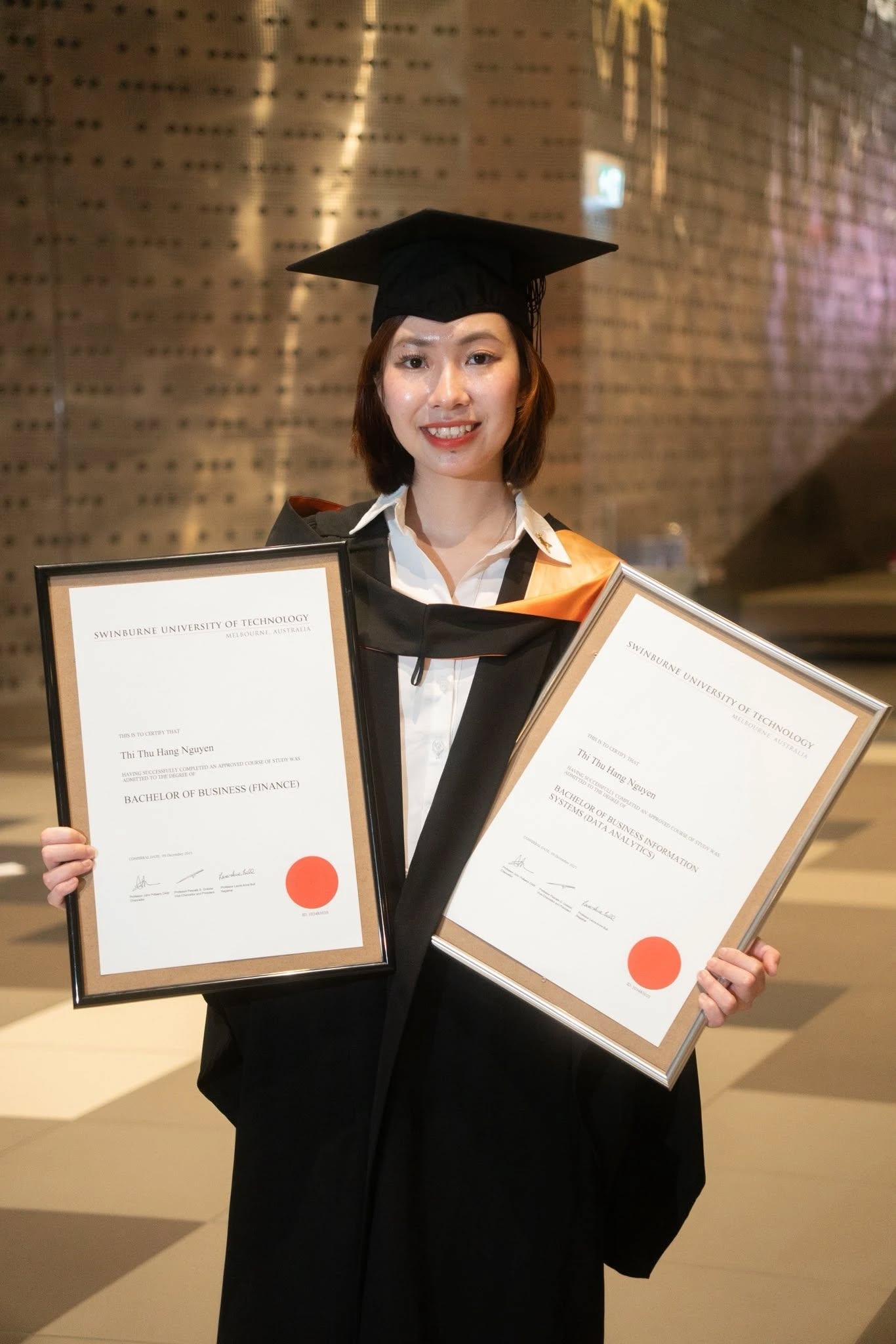 Trong thời gian này, Thu Hằng theo học ngành Kinh doanh tại cơ sở Swinburne Việt Nam. Đến tháng 3/2022, cô chính thức sang Australia, bắt đầu cuộc sống sinh viên tại Swinburne University of Technology với suất học bổng trị giá 40.000 USD.