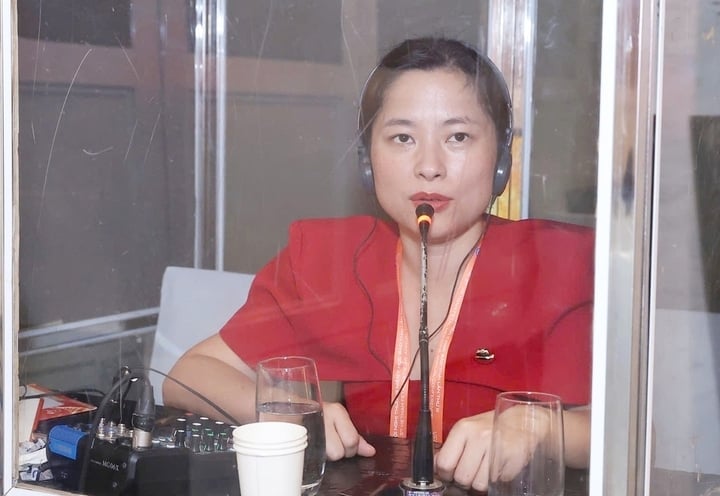 Bác sĩ Phạm Minh Giang, 38 tuổi, công tác tại Bệnh viện Phụ sản Trung ương gây chú ý khi ngồi cabin dịch nội dung hội nghị y học quốc tế.