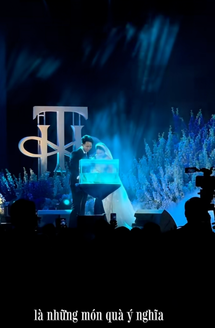 Nhưng đỉnh điểm của sự độc đáo, khiến các khách mời phải ồ lên thích thú chính là nghi thức cho tôm ăn. Vốn là đại thiếu gia của một gia đình kinh doanh trong ngành thức ăn nuôi tôm tại Bạc Liêu, chú rể đã khéo léo lồng ghép công việc kinh doanh cốt lõi của gia đình vào ngày vui nhất đời mình.