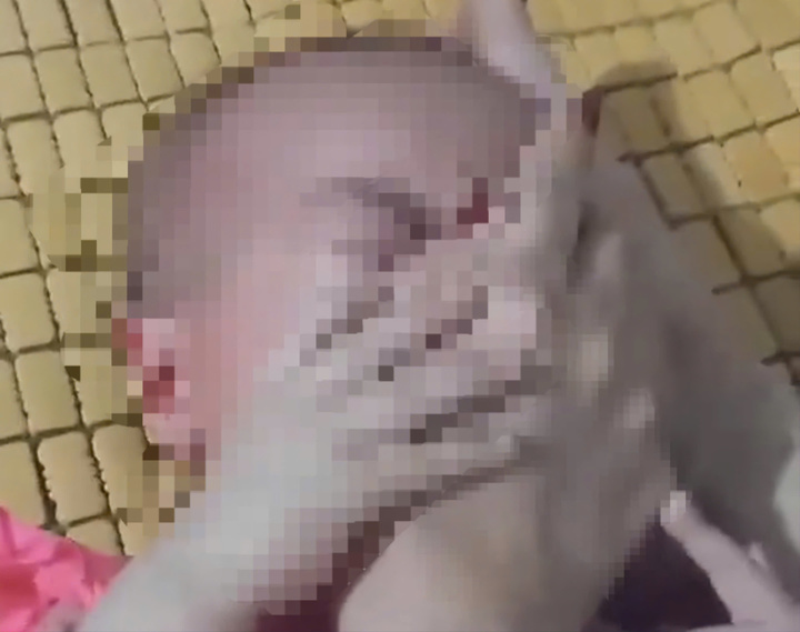 Trước đó, trên mạng xã hội Facebook lan truyền clip ngắn về việc một phụ nữ một tay cầm điện thoại, tay còn lại liên tục xiết chặt vùng mặt của bé gái khoảng 1 tuổi đang nằm ngửa trên giường.