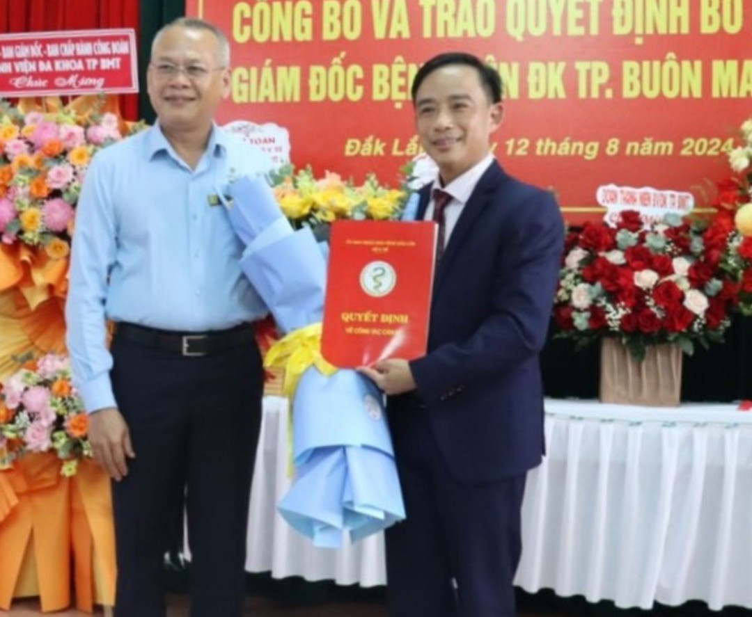 Bác sĩ Trịnh Hồng Nhựt (bìa phải, Giám đốc Bệnh viện Đa khoa Buôn Ma Thuột) được bổ nhiệm giữ chức vụ Giám đốc Bệnh viện Đa khoa vùng Tây Nguyên.