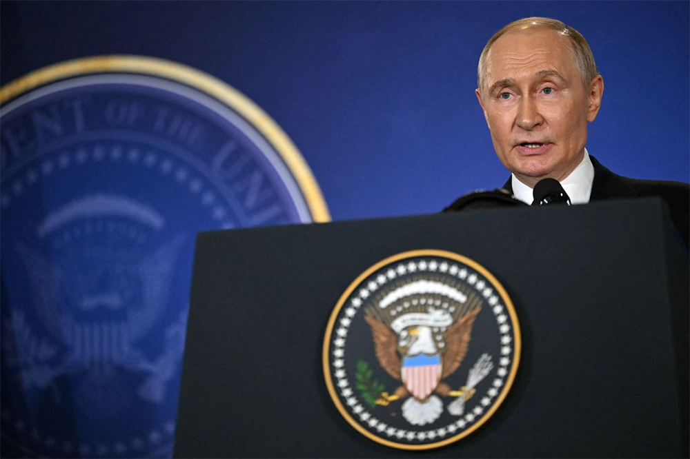 Tổng thống Nga Vladimir Putin trong cuộc họp báo chung tại Alaska ngày 15/8. Ảnh: AFP