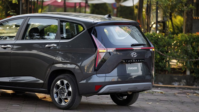 Hai bên thân xe Stargazer được Hyundai tiếp tục tạo hình với ngôn ngữ hiện đại, đặc biệt ở phần bánh mâm với đường kính 16 inch. Cùng với đó, đuôi xe gây ấn tượng bởi cụm đèn hậu tạo hình tam giác được nối liền với nhau bằng một dải LED, tạo hình chữ H cỡ lớn đại diện cho Hyundai.