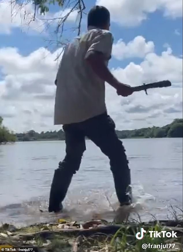 Con chuột lang nước to lớn đã nhảy lên lưng cô gái và dường như gặm đầu cô trước khi cô chìm xuống nước.