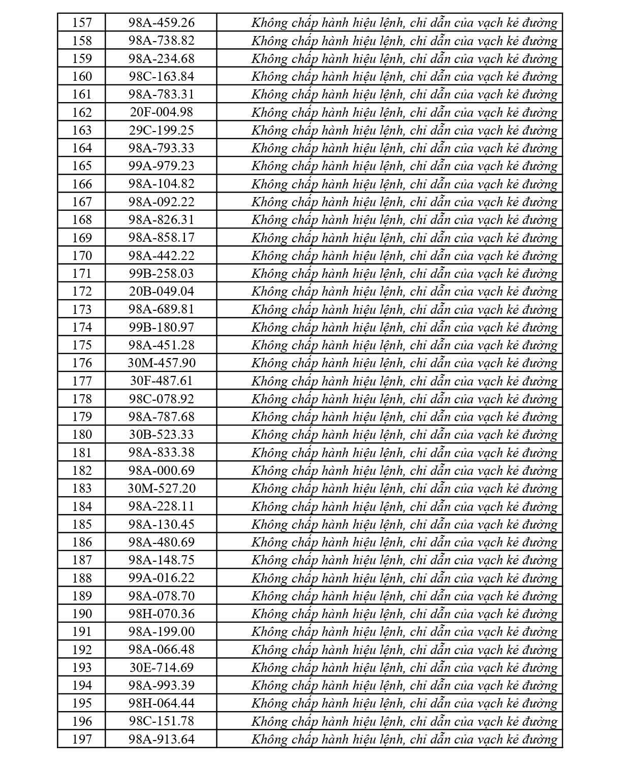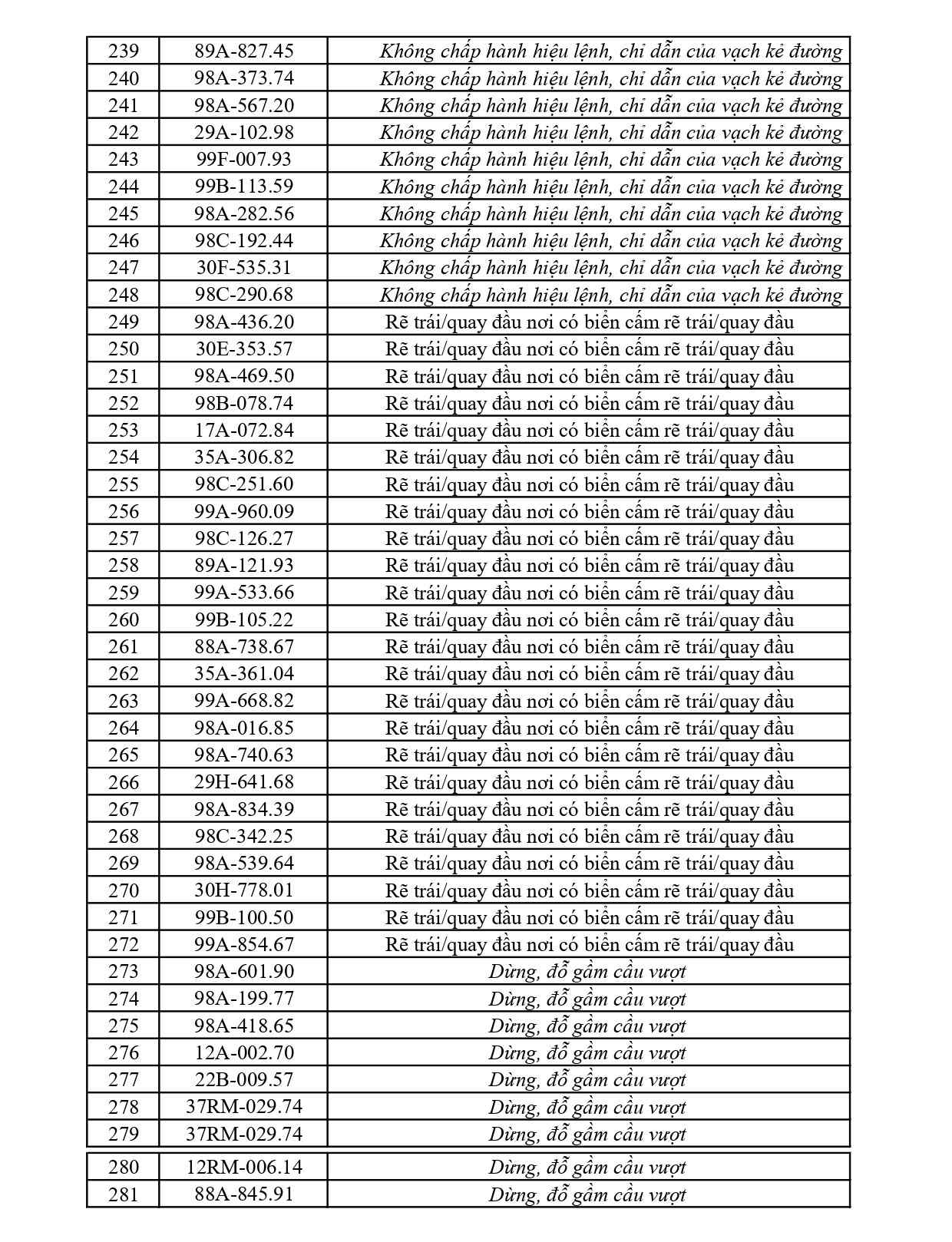 Trong đó có 41 trường hợp xe ô tô vượt đèn đỏ, 188 trường hợp vi phạm vạch kẻ đường, 19 trường hợp xe mô tô, xe máy vượt đèn đỏ và những lỗi vi phạm khác. Danh sách phạt nguội cụ thể như sau: