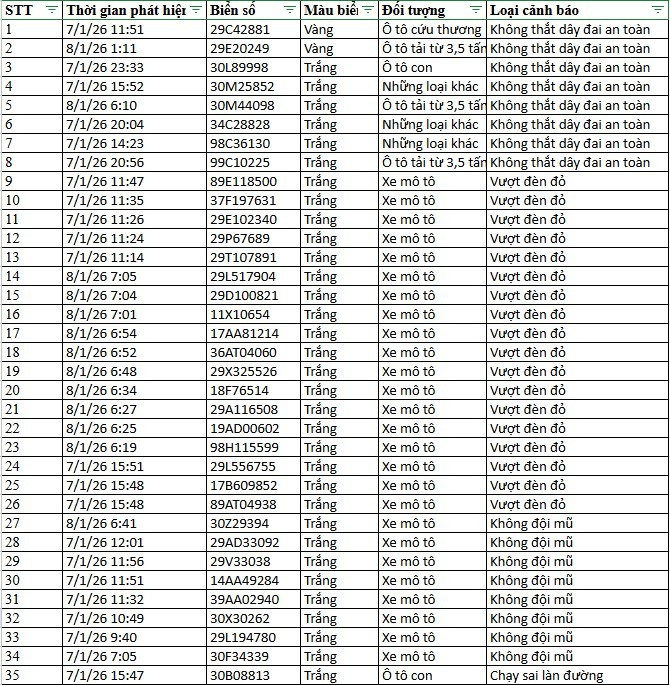 Theo Phòng CSGT Công an TP Hà Nội, trong thời gian 1 tháng vận hành từ 13/12/2025 đến 12/1/2026, hệ thống camera AI lắp đặt trên nhiều tuyến đường Thủ đô đã phát hiện 6.351 trường hợp vi phạm đủ điều kiện xử lý “phạt nguội”.