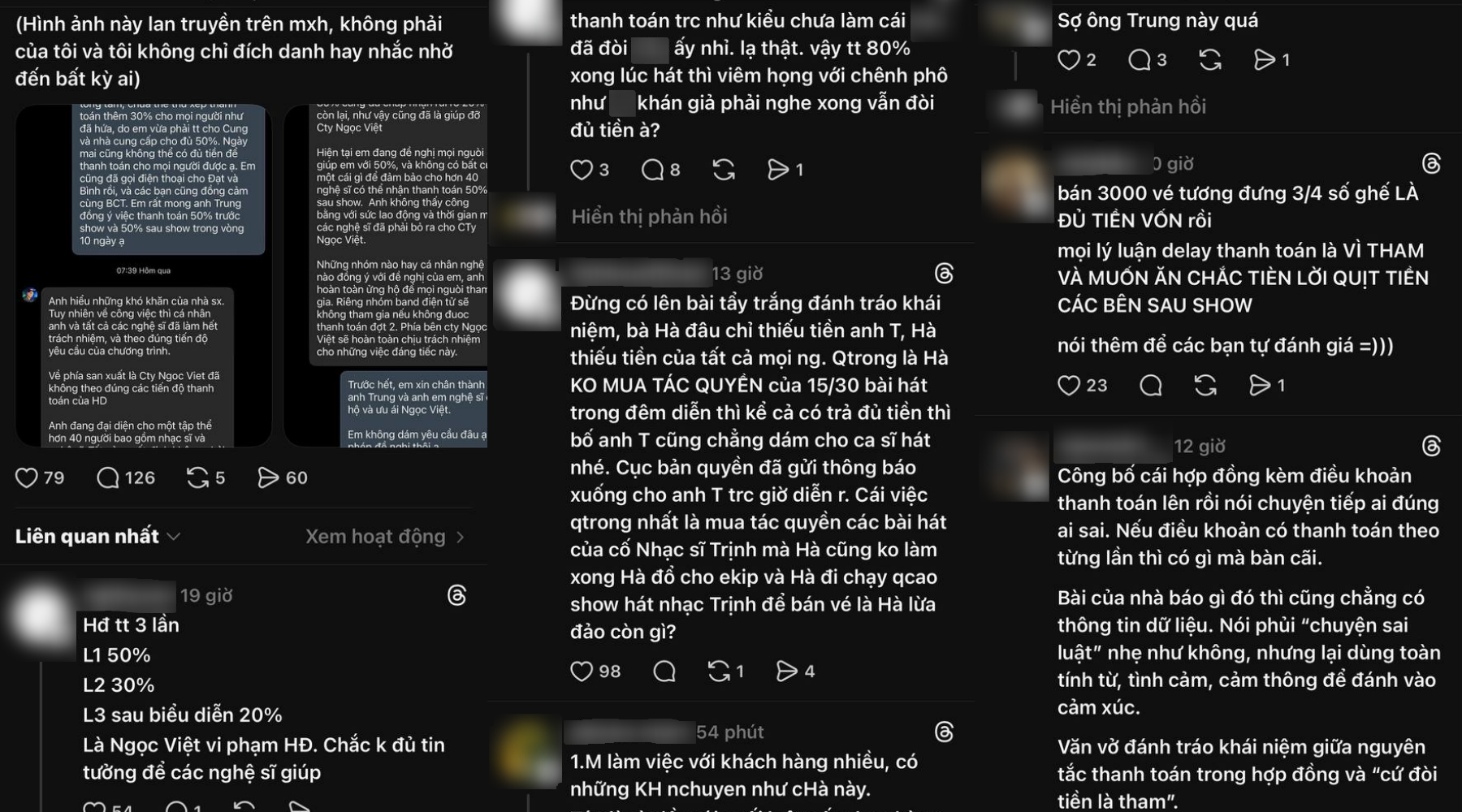 Trên mạng xã hội, tài khoản N.H.L chia sẻ bài viết dài, phân tích việc dư luận “đảo chiều” sau khi các tin nhắn của phía nhà tổ chức bị tung ra dưới góc nhìn trong cuộc của một nhà làm show. Theo bài đăng, việc cố tình không thanh toán đúng hạn rồi đặt nghệ sĩ vào thế “lên diễn để được tiếng, không diễn sẽ bị chửi” là một dạng gây áp lực đạo đức. Từ trải nghiệm cá nhân từng đại diện cho nhiều nghệ sĩ và phải gánh hậu quả tài chính vì tin vào lời hứa của bầu show, chủ tài khoản cho rằng quyết định cứng rắn của Giám đốc âm nhạc trong trường hợp này là cần thiết để bảo vệ tập thể.