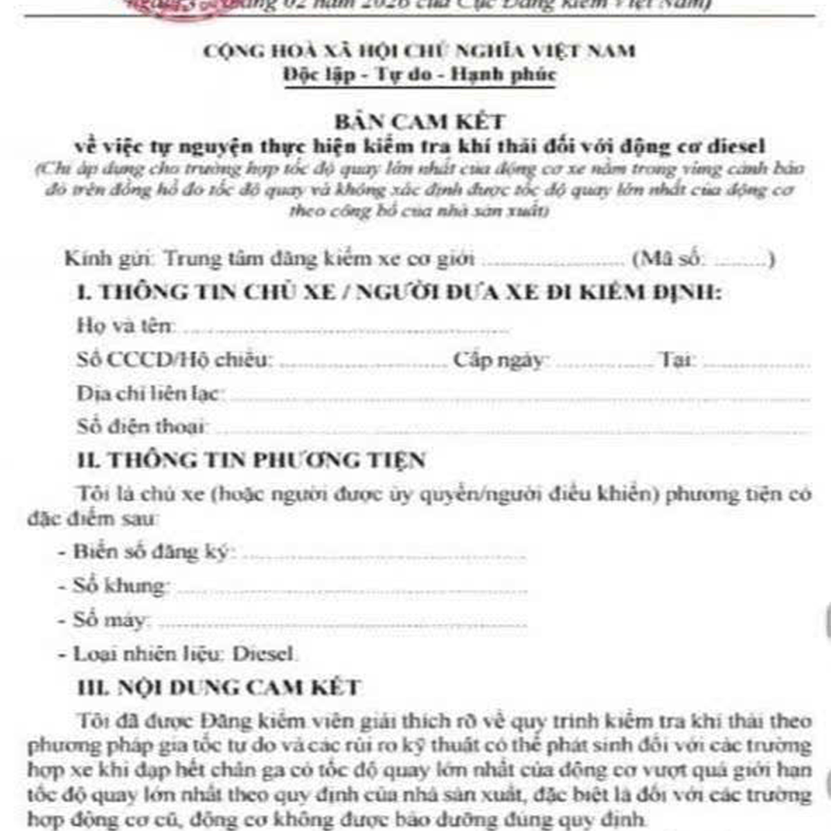 Hình ảnh bản cam kết khi kiểm tra khí thải một một số chủ xe phải ký. Ảnh: Lộc Liên.