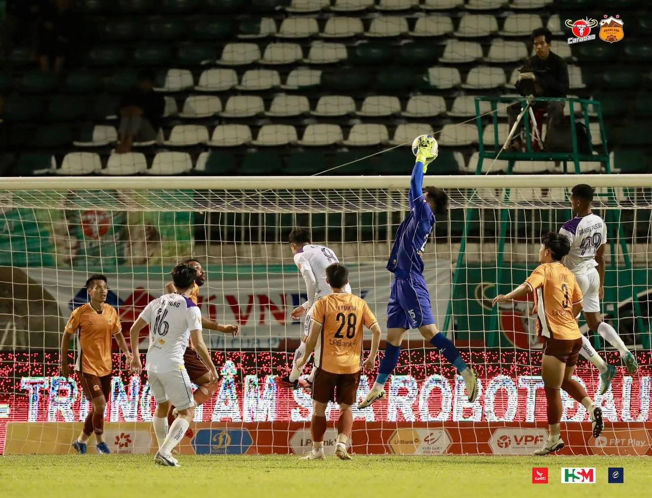 Trong thế trận đầy khó khăn ấy, một lần nữa thủ môn Trần Trung Kiên lại cho thấy vì sao anh được HLV Kim Sang-sik điền tên vào danh sách tham dự AFF Cup 2024. Dù phải nhận 3 bàn thua, “người gác đền” sinh năm 2003 vẫn xứng đáng nhận được những lời khen ngợi nhờ hàng loạt pha cứu thua xuất sắc. Nếu không có các tình huống cản phá của Trung Kiên, HAGL có thể đã sớm sụp đổ ngay từ hiệp một.