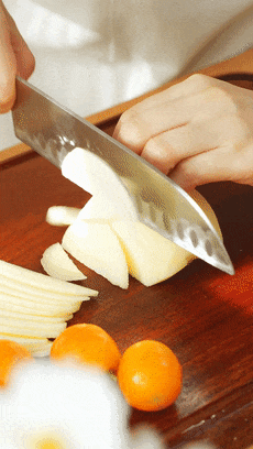 2. Quất cắt vài đường dọc thân quả, không cần cắt rời hẳn. Táo cũng thái lát mỏng để khi nấu các nguyên liệu dễ dàng tiết ra hương vị đặc trưng.