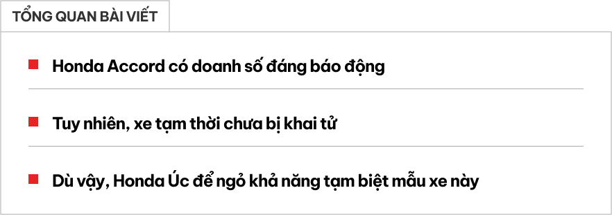 Honda Accord, một cái tên gắn liền với lịch sử của hãng xe Nhật Bản, đang trải qua giai đoạn khó khăn tại thị trường Úc cũng như một số thị trường khác như Việt Nam.