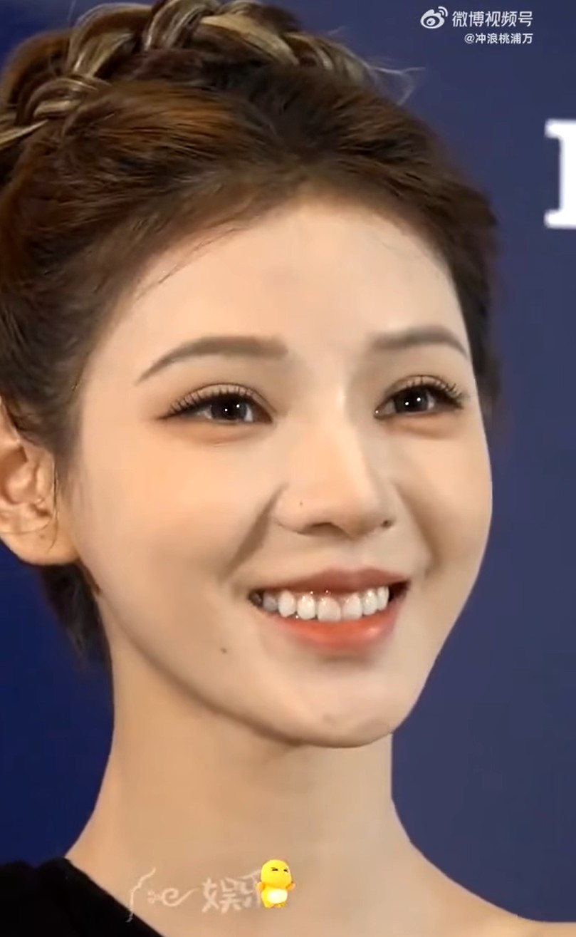 Dù bị camera soi sát đến từng chi tiết, Trương Dư Hi vẫn tự tin vô cùng nhờ làn da mịn màng, trắng phát sáng. Nụ cười nhẹ cùng ánh mắt long lanh tạo cảm giác dịu dàng, tinh tế nhưng vẫn toát lên nét kiêu sa đặc trưng. Phần tóc búi cao gọn gàng càng làm nổi bật nét thanh thoát, sống mũi cao và đường viền hàm mềm mại. Có thể nói, gương mặt của cô là tổ hợp của những gì đẹp nhất.