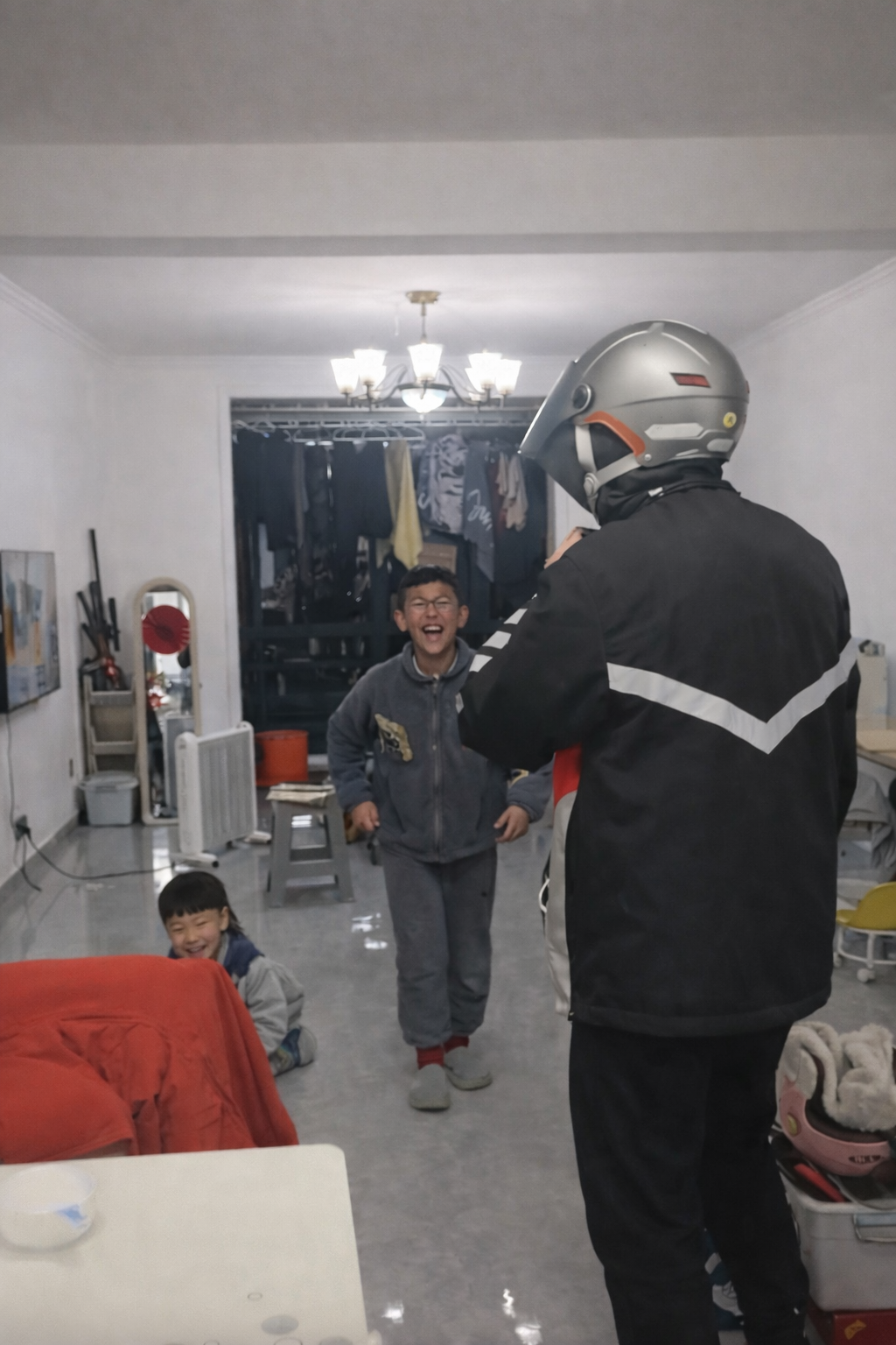 Hai cậu bé con trai anh lập tức chạy tới, quỳ xuống trước mặt cha, vừa dập đầu vừa nói lời chúc năm mới. Người vợ cũng vội vàng vào bếp luộc bánh chẻo để cả nhà cùng ăn bữa Tết muộn. Khoảnh khắc ấy ngắn ngủi nhưng đủ để làm tan biến mọi nhọc nhằn. Người cha không nói gì nhiều, nhưng ánh mắt và nụ cười của anh chính là câu trả lời rằng mọi vất vả đều đáng giá.