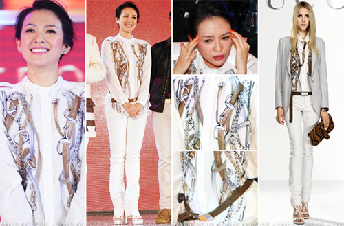 Có vẻ Trương Tử Di "bồ kết" Gucci nhất khi hầu hết trong các sự kiện lớn nhỏ hay lên bìa tạp chí cô đều chọn trang phục của hãng. Một khi đã diện đồ Gucci, người đẹp sẽ "tong xoẹt tong" từ trang phục cho đến phụ kiện của hãng ngày. Gucci đã giúp người đẹp luôn trở thành tâm điểm của các bữa tiệc.