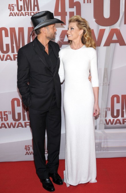 Tim McGraw và Faith Hill luôn là một cặp đôi thời trang. Tại lễ trao giải CMA 2011, cặp đôi vàng của làng nhạc đồng quê đã bất ngờ tạo nên một "kiệt tác" trang phục trắng đen ấn tượng.