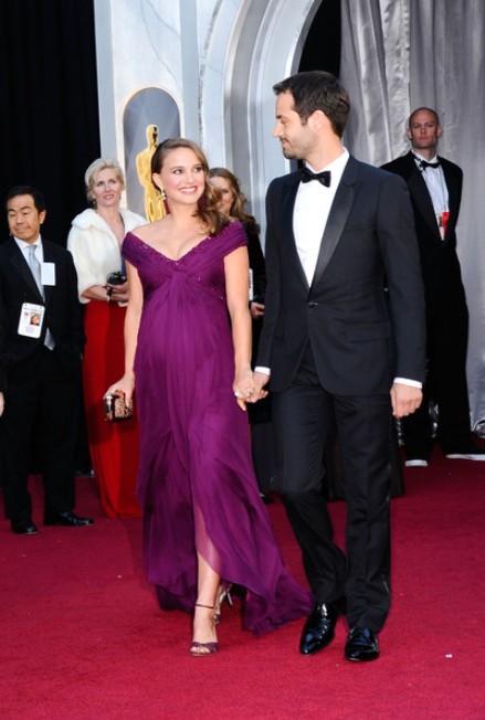 Tại lễ trao giải Oscar 2011, Natalie tay trong tay với Benjamin với bộ đầm tím lãng mạn của Rodarte.