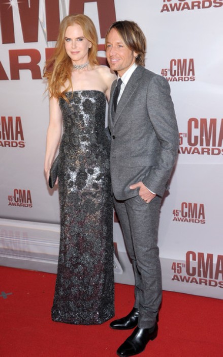 Cặp sao người Úc - Nicole Kidman và Keith Urban đã "đánh cắp" trái tim của cả sân khấu lễ trao giải nhạc đồng quê CMA 2011 khi Nicole lấp lánh trong thiết kế ánh kim của Jean Paul Gaulthier và Keith thì vô cùng lịch lãm trong thiết kế vest ghi xám.