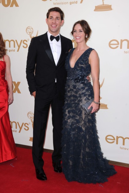 Cặp đôi thời trang John Krasinksi và Emily Blunt mang hình ảnh sang trọng tới lễ trao giải Emmy 2011. Emily tỏa sáng trong thiết kế dạ hội màu xanh navy hiệu Elie Saab, trong khi John cổ điển trong bộ vest màu đen.