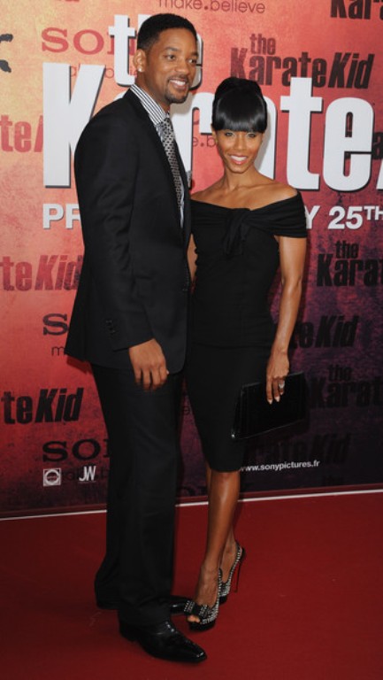 Tại buổi giới thiệu bộ phim Karate Kid tại Paris, Will Smith phá cách trong áo sơ mi kẻ sọc và Jada Pinket thì tinh tế trong bộ váy màu đen.