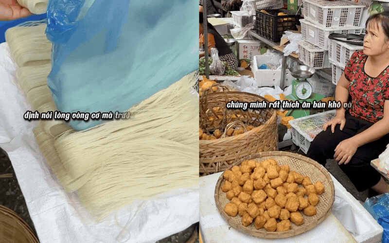 Theo lời tâm tình của Hoài, người dân quê cô cực kỳ thích ăn bún khô và đậu phụ chao, thế nên dạo quanh bất cứ khu chợ phiên nào bạn cũng sẽ dễ dàng bắt gặp hai thức đồ quen thuộc này được bày bán la liệt. Chúng mộc mạc, bình dị nhưng lại là thứ nguyên liệu không thể thiếu trong mâm cơm nồng ấm của mỗi gia đình nơi đây.