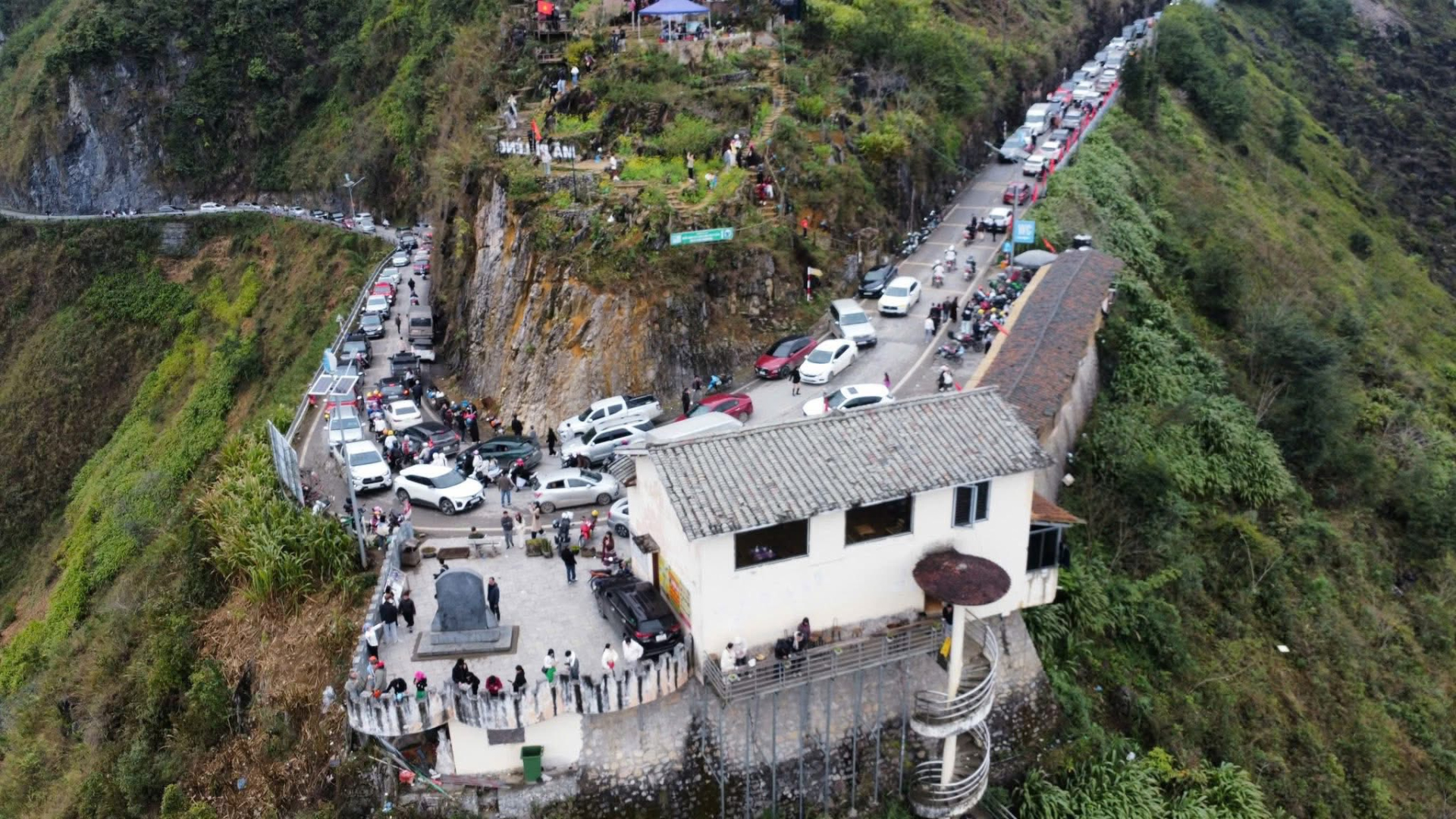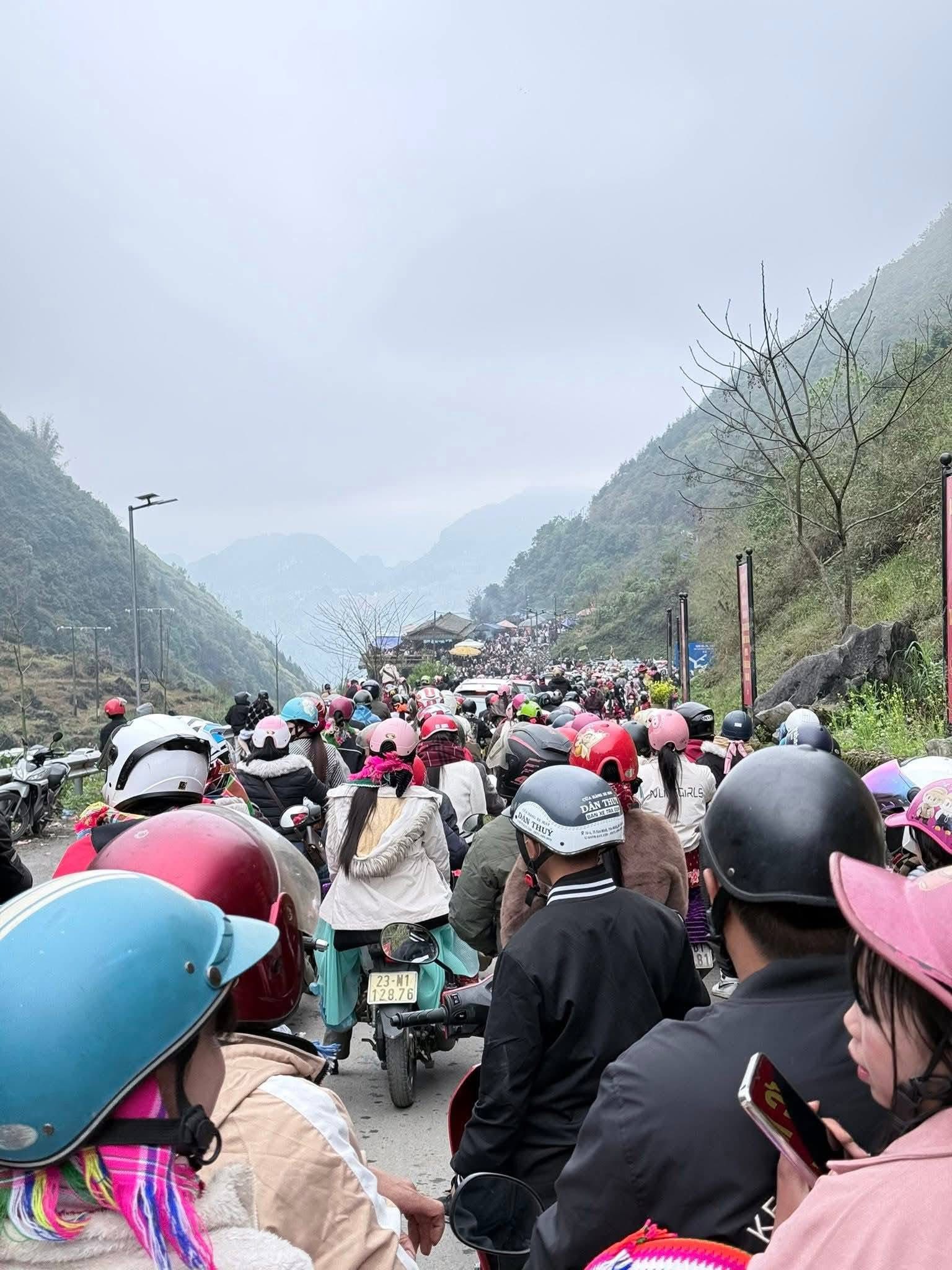 Hình ảnh ghi nhận tại Hà Giang cho thấy dòng người và phương tiện ken đặc trên tuyến đường đèo giữa núi rừng. Hàng nghìn du khách đổ về cùng thời điểm khiến con đường vốn nhỏ hẹp trở nên quá tải.