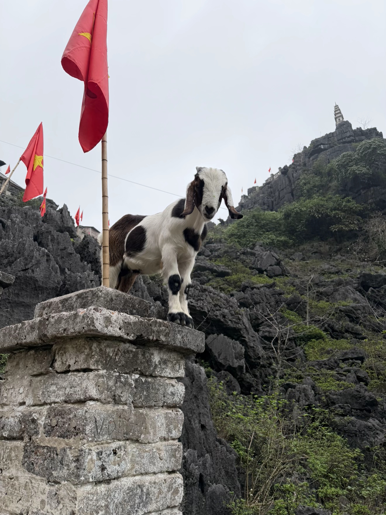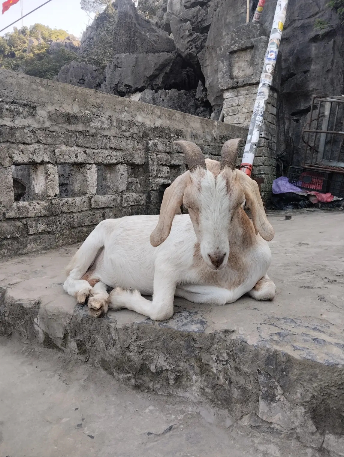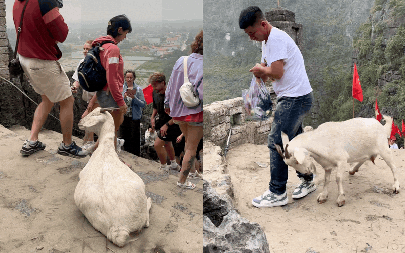 Chuyện là trên đoạn đường leo núi dốc ngược, mồ hôi mẹ mồ hôi con thi nhau rơi, không ít du khách đang thở dốc bỗng dưng khựng lại vì thấy một bóng dáng nhỏ nhắn đứng chắn ngang giữa đường. Chẳng phải bảo vệ, cũng chẳng phải người soát vé, "đại ca" đang ung dung đứng ngáng đường ở đây chính là một chú dê núi chính hiệu. Ở vùng đất cố đô này, dê núi vốn là đặc sản, là hình ảnh quen thuộc vắt vẻo trên những vách đá cheo leo.