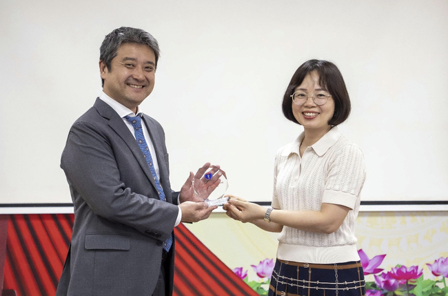 Ông Makoto Anezaki - Giám đốc Marketing Diana Unicharm - trao ủng hộ tới Cục Bà mẹ - Trẻ em, Bộ Y Tế