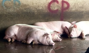 Heo của C.P. Việt Nam tại lò mổ ở Mỹ Xuyên.