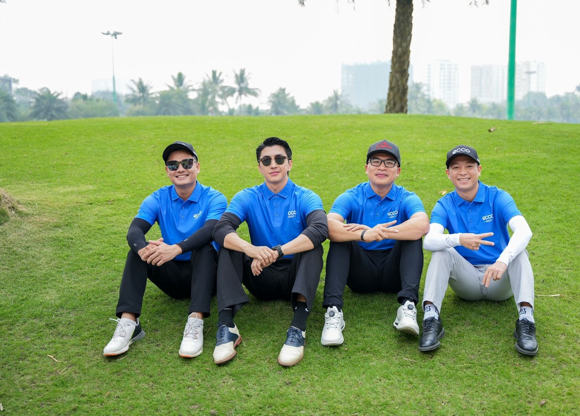 Diễn viên Bình An, BLV Nguyễn Nam Giang, Thái Dương và Viết Thắng tại sự kiện, cùng chia sẻ tinh thần golf hiện đại.