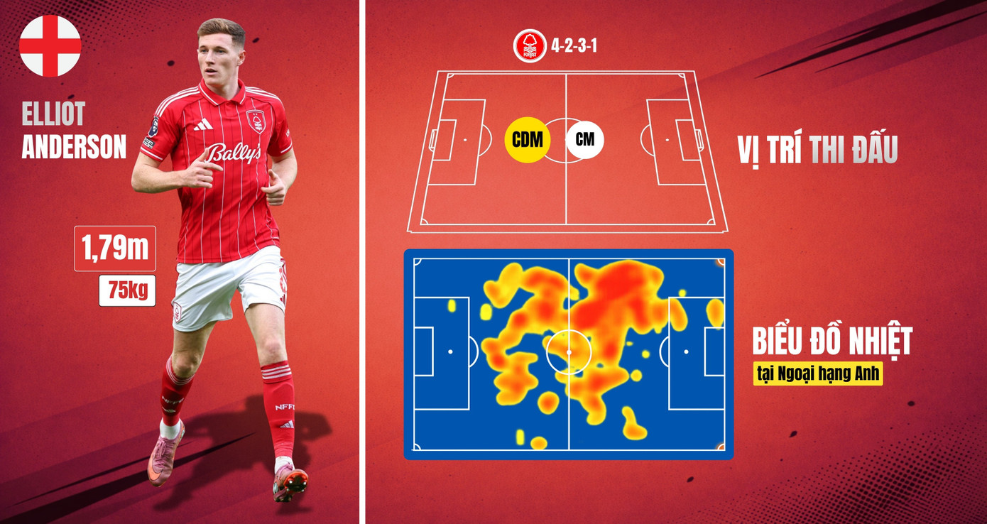 Elliot Anderson thể hiện phong độ xuất sắc và ổn định cùng Nottingham Forest ở Ngoại hạng Anh. Sau mùa giải 2025/26, tuyển thủ Anh có nhiều lựa chọn để gia nhập bến đỗ lớn hơn.