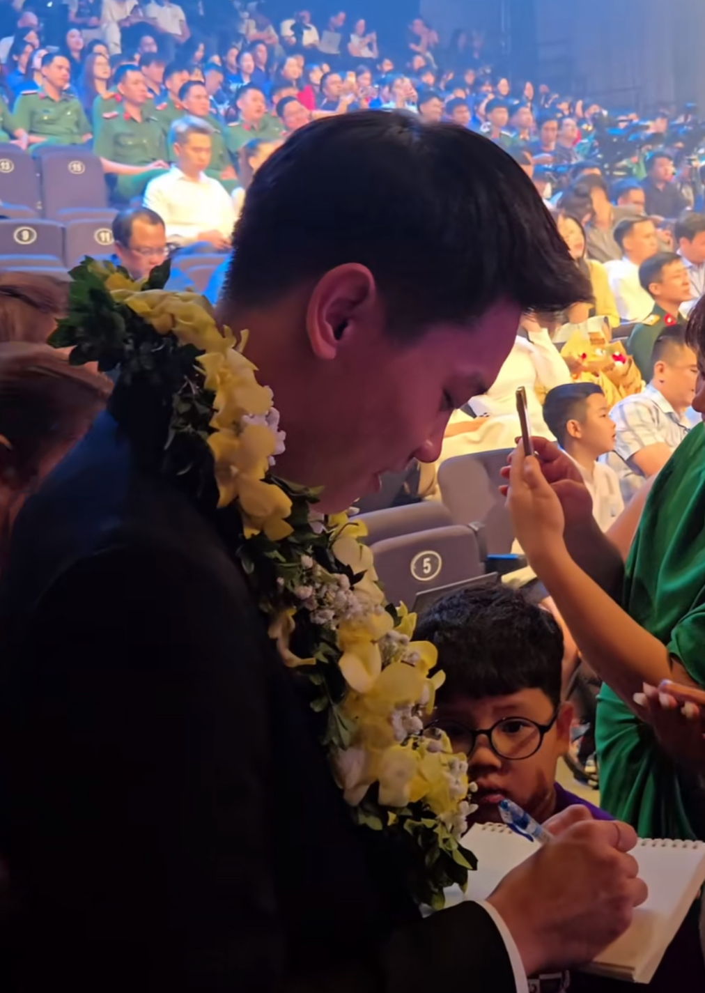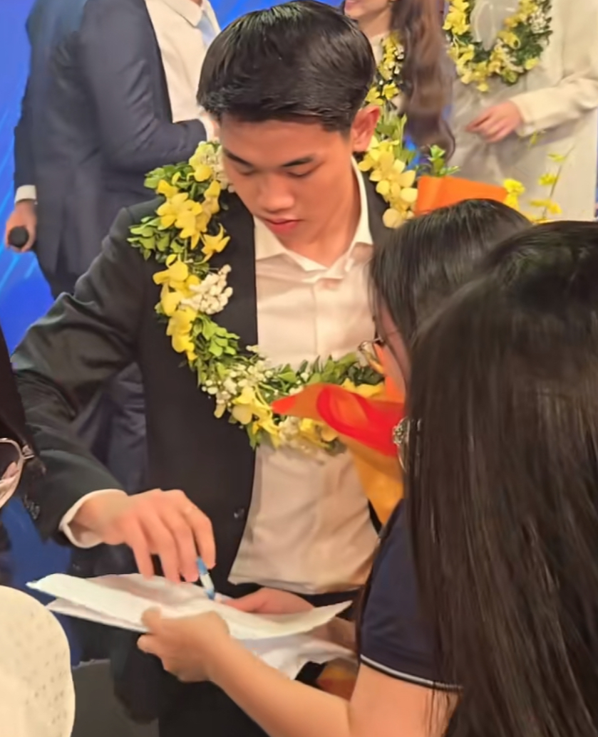 Đình Bắc còn chứng minh sức hút khi liên tục được người hâm mộ vây kín xin chụp ảnh cùng và chữ ký (Ảnh: TikTok Hoa hậu Việt Nam)