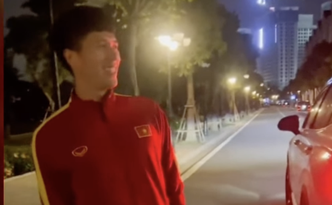Nàng WAGs Triệu Mộc Trinh - vợ tiền vệ Đỗ Hùng Dũng mới đây chia sẻ khoảnh khắc cực vui khi đón anh trở về nhà ăn Tết vào tối mùng 1 sau quãng thời gian đi xa thi đấu. Hùng Dũng được Đình Trọng lái xe đưa về tận nhà dau trận đấu tối 1/2 trên SVĐ Mỹ Đình. Anh nhanh chóng xách hành lý xuống khỏi xe trong sự chào đón reo vui của vợ.